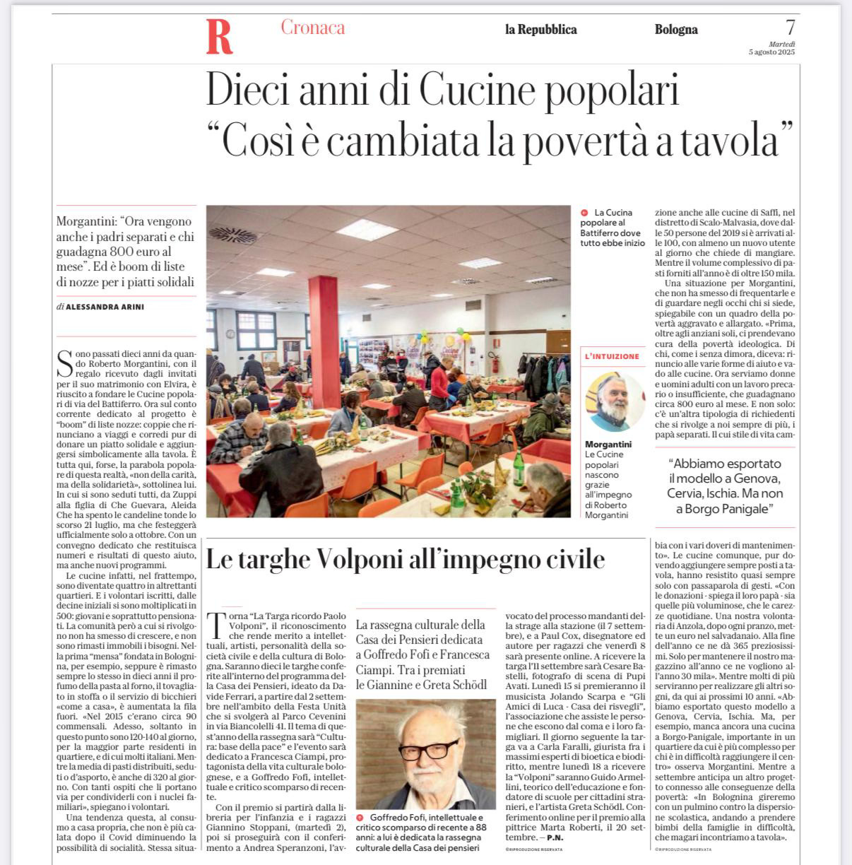 Il decimo compleanno con l’apertura della prima Cucina popolare Battiferro è stato a luglio. Ne parleremo nelle prossime pagine perché stiamo organizzando un bel festeggiamento. Intanto chi ha tempo e voglia legga questo pezzo di Repubblica.
